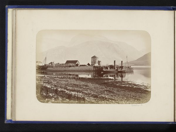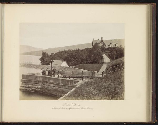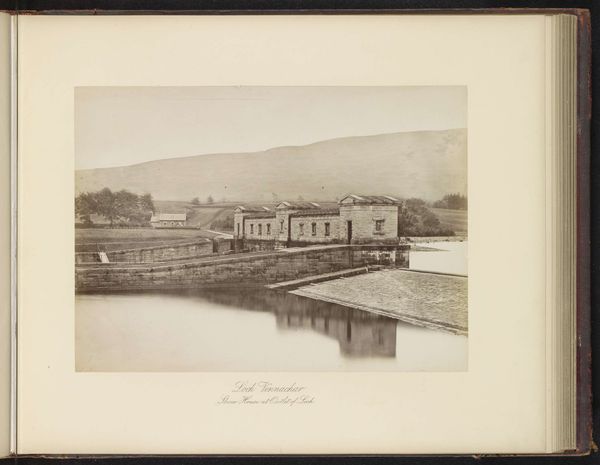 Editor: This is an albumen print, "Loch Vennachar, works at outlet of loch" taken before 1889 by T. & R. Annan & Sons. I find it compelling how the industrial architecture melds with the natural landscape, a contrast captured in such detail. What do you see in this piece? Curator: I see the convergence of man and nature through the lens of industry, specifically the means of controlling water. Look at the photograph’s materiality – the albumen print, a process heavily reliant on silver, a resource extracted and refined through labor. How does this transformation of raw materials inform the image itself? Editor: So you're saying the photo itself is a product of industry? I hadn’t considered that. It's fascinating to think about the silver and other materials necessary to produce this image reflecting on other industrial interventions. Curator: Exactly! Consider the labor involved in constructing the outlet works pictured and then, in parallel, the skilled labor to make this albumen print, like coating and sensitizing the paper. The value and meaning we ascribe isn't simply aesthetic. It's rooted in this material and labor relationship. Does it challenge our understanding of "art" versus utilitarian structures? Editor: I think so, especially when we consider how integral these kinds of structures are to the growth of industry and urbanization. It almost makes you reconsider the impact of development on even seemingly untouched landscapes. Curator: Indeed. It reveals how what we deem "natural" is already deeply mediated by human activity and transformed materials. What appears as a simple landscape is, in fact, a site of intense social and material exchange. Editor: This perspective really broadens my understanding, highlighting the processes and materials intertwined with the artwork itself. It's a lot more complex than just a pretty picture. Curator: Precisely. It moves us to question the systems that create both art and our everyday world.