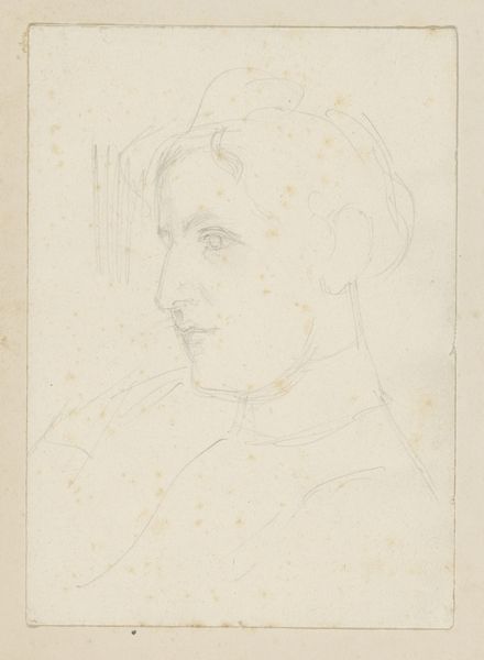 August Allebé created this portrait of a woman using graphite on paper. The artist's confident yet tentative use of graphite allows us to see the process of its making. The pressure and direction of the pencil on paper create a range of tones and textures, from the light, sketchy outlines to the denser shading that models the woman's face. Note also the oval shape containing the figure, and the gestural, searching lines trailing down the paper. These were likely guide marks that reveal the artist's attempt to capture not just a likeness, but also a sense of character and presence. Although drawing appears simple, it requires considerable skill in translating three-dimensional forms onto a flat surface. The way Allebé uses these simple tools and techniques elevates the artwork beyond a mere sketch. The conscious decisions about pressure and direction in mark-making all contribute to the work's aesthetic qualities. This piece reminds us that even in the most straightforward of materials, the artist's hand and process are central to the meaning we derive from the work. It's a powerful example of how craft and fine art can merge.