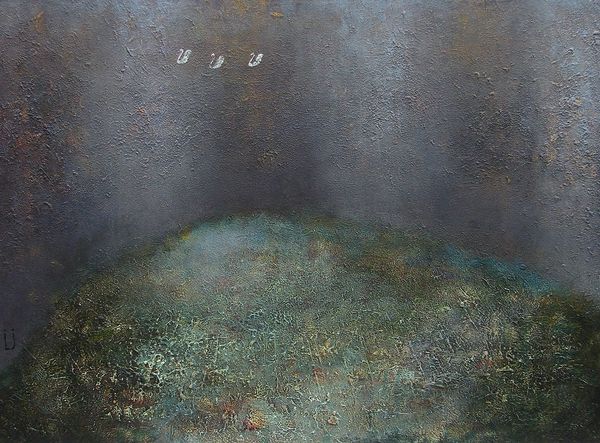 Lech Jankowski made this painting, Grüner Tisch, with oil on canvas. I love the textural quality in this piece, it's the kind of painting where you can imagine the artist layering on paint, scraping some of it away, and then going back in again. There's an area on the right-hand side of the table where the paint looks particularly thick, almost as if the artist was building up a little mound. It’s got me wondering what kind of tool Lech Jankowski used to create those marks. The surface has got a really interesting quality to it. It's rough and uneven, and I think that adds to the kind of emotional impact of the piece. In some ways, it reminds me of Giorgio Morandi, especially in the colours he uses to create a still life from a very limited range of tones, and the moody, melancholic atmosphere that pervades the scene.