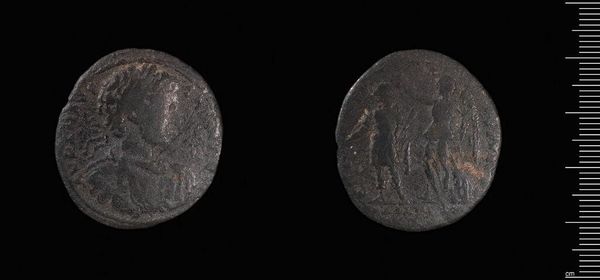 Curator: Here we have a coin from Tarsus, minted during the reign of Trajan Decius. It's currently held in the Harvard Art Museums collection. Editor: Worn, isn't it? Like a memory half-erased, you can still make out the ghost of an image. Curator: Indeed. The coin's material and imagery were carefully chosen. Notice how the figure on one side might represent Tyche, the city's guardian goddess. This was a common image, but it spoke directly to Tarsus's identity and hopes. Editor: A little god in your pocket! Gods were used for marketing even then. Curator: Precisely. And the emperor's portrait on the other side? A strong statement about power and Roman authority. Editor: Amazing how a single coin becomes a time capsule. Curator: It shows us the past is always present, influencing our symbols and stories. Editor: And that even the smallest objects can hold worlds of meaning.