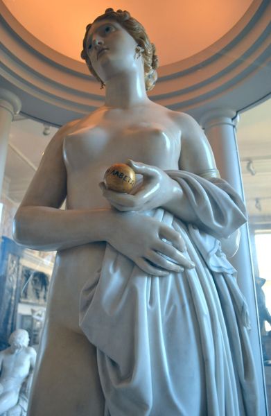 John Gibson made 'The Tinted Venus' out of marble, a material associated with classical sculpture, but with a twist. Gibson employed techniques to tint the marble, adding color to the skin, lips, and hair. This unconventional choice was intended to breathe life into the sculpture. The effect is subtle, but it challenges the traditional association of marble sculpture with pure, unadorned whiteness. To achieve this effect, the marble had to be carefully carved and polished, requiring countless hours of skilled labor. The process of tinting involved applying pigments directly to the marble surface, creating delicate variations in tone and texture. This went against the traditional idea of marble sculpture representing idealized perfection. Instead, Gibson embraced a more naturalistic approach, hinting at the warmth and complexity of human flesh. 'The Tinted Venus' challenges our assumptions about what sculpture should be. By experimenting with color and surface treatment, Gibson invites us to reconsider the boundaries between classical tradition and contemporary innovation, highlighting the value of craft within fine art.