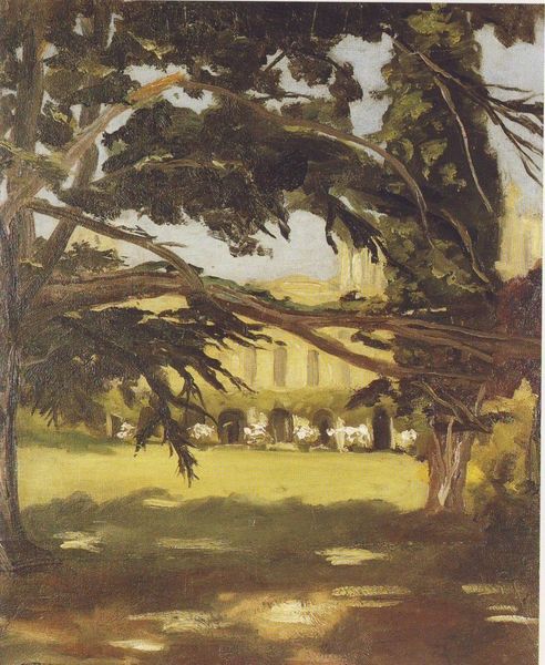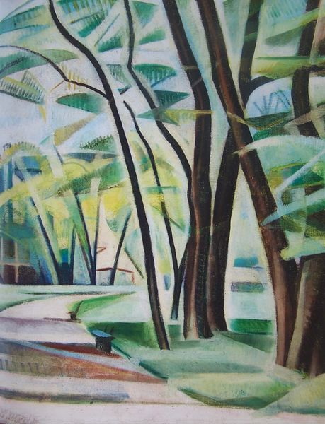 Petre Abrudan painted this landscape from Baia Mare, sometime in the mid-20th century, probably in oil. Look at the way he used colour here, the red-pink earth against the muted greens and browns. It’s like he's making colour do all the work to describe the scene. The paint is applied with a kind of casual directness, you can see these individual brushstrokes that build up the image. I particularly love how the foreground path is rendered, those strokes of peachy pink give it such a soft, inviting feel. Then your eye travels up, past the tree trunks, to the building in the background. It’s like a journey through colour. This reminds me a bit of some of Milton Avery’s landscapes, that same kind of simplified, almost flattened perspective. But Abrudan brings his own sensibility to it, a certain rawness that makes it feel fresh and alive. With paintings like this, there's no right way to see it. It's about letting the colours and forms spark something in you.