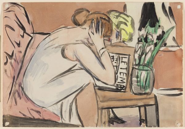 Niels Larsen Stevns made this painting with oil on canvas sometime in the late 19th or early 20th century. The painting shows a figure immersed in a book, surrounded by a space that seems both domestic and artistic. The visible brushstrokes and the materiality of the paint give the image a raw, immediate quality. You can almost feel the artist at work, layering color upon color to capture the scene. Considering the context, oil paint was widely available, a product of industrial manufacturing and global trade. This ready availability allowed artists to focus more on the act of painting itself, playing with form and color. The painting reflects a moment of quiet contemplation, yet it's also a product of its time, shaped by the accessibility of its materials and the social context in which it was created. Stevns is not only showing us a person reading, but also implicitly commenting on the labor, production, and consumption of culture in a changing world.