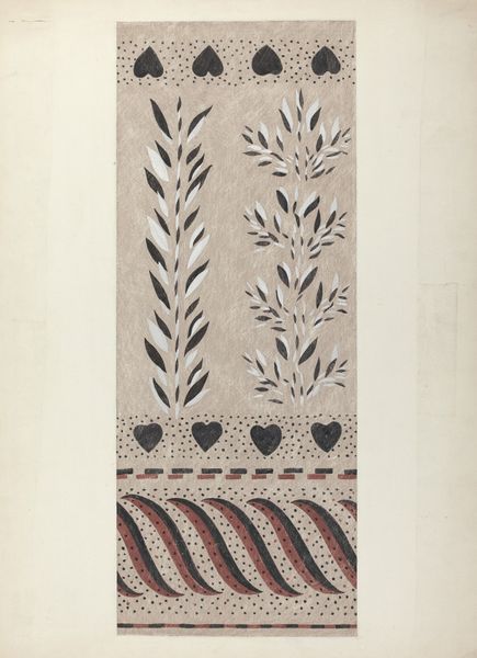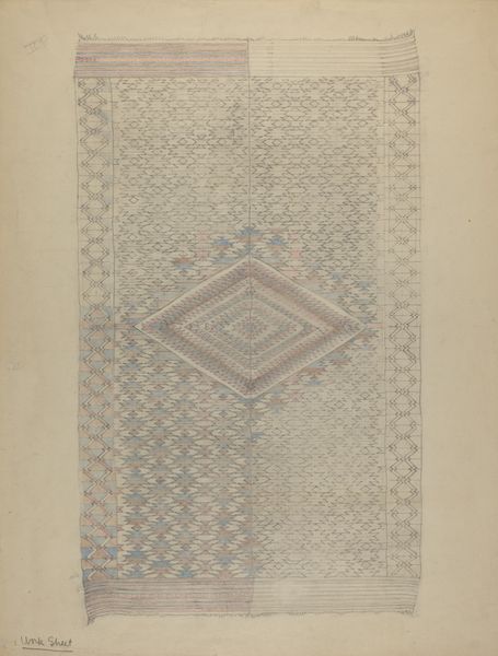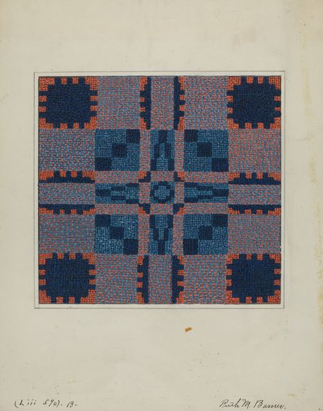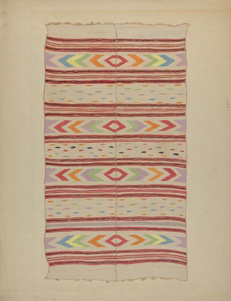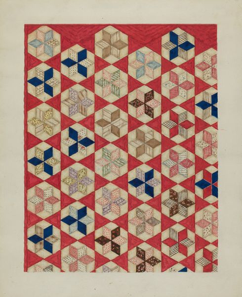 Reinier Willem Petrus de Vries created this drawing, “Vlakversiering met lijnen, driehoeken en ruiten”, using ink and graphite on paper. The nature of these materials gives the artwork a precise and graphic quality, emphasizing the geometric forms and patterns. This work reflects the social context of early 20th-century design, when artists and designers were exploring abstraction and pattern as a response to industrialization. The artist meticulously renders interlocking shapes in red, black, white, blue, and yellow, showcasing the skilled traditions of geometric drawing and design. Each shape and line is carefully placed, emphasizing the importance of precision and craftsmanship. By focusing on these basic geometric forms, de Vries elevates the act of drawing to a level of refinement, blurring the lines between fine art and applied design, while highlighting the potential for beauty and order within simple, repetitive forms.