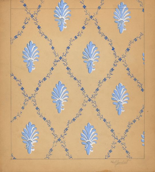 Curator: Owen Jones gives us this lovely decorative panel, “Leaves and Flowers from Nature Ornament no. 10: Passion flowers.” The detail is gorgeous, isn't it? Editor: It's calming, almost ethereal. I see delicate vines, swirling leaves, and the intriguing passion flowers, all rendered in pale shades, floating against a light background. What else can you tell me about this design? Curator: While its exact date is not specified, this pattern embodies the visual vocabulary Jones explored to revive decoration and ornament during the 19th century. He was really on a mission to improve design and make beauty accessible. It feels distinctly informed by nature, in that beautiful but disciplined way he achieves. Editor: Yes, "disciplined" is a great word. You feel the passionflower—a symbol loaded with religious significance for some, and for others, a plant of medicinal qualities used to treat everything from anxiety to insomnia—presented here, rendered in such a way that strips away its complex historical identity. It becomes an abstracted element. How do we interpret that kind of flattening? Curator: Maybe Jones believed pure aesthetic form could bypass historical burdens, creating something universally beautiful? I appreciate the tension between botanical accuracy and pattern abstraction. He captured something real, yet designed something purely imaginative, if that makes any sense? Editor: I see your point about beauty as universal language, but let's also remember Jones operated within very specific contexts: class structures, colonial expansion and all that it entailed, racial biases. Even "nature" as a concept carries so much cultural baggage. This stylized passionflower, free from the "messiness" of the real world, could also reinforce existing power structures by dictating what is, and isn't, considered aesthetically valuable. Curator: I guess beauty IS never simple, is it? Editor: Not at all! And by interrogating its complexities in art like Jones' panel, we can gain new perspective into the assumptions shaping the past, and perhaps reframe the conversations around representation of culture today. Curator: Beautifully said. Thanks!