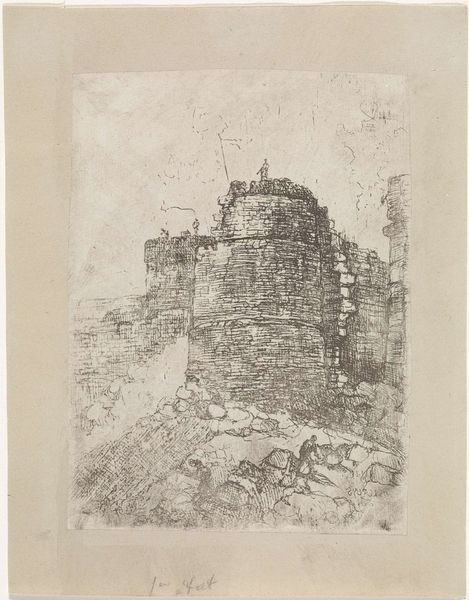 Alexander Schaepkens created this print of the Maaspunttoren in the city wall of Maastricht using etching. During the 19th century, as national identities solidified, there was a surge of interest in local history, architecture, and folklore, positioning the artist as a guardian of cultural memory. Schaepkens, working in this environment, documented the region's architectural heritage, capturing the atmosphere of his native Limburg. The tower, a formidable defensive structure, speaks to centuries of battles and sieges, reflecting the ever-shifting borders and power struggles that shaped Maastricht's identity. Look closely and consider the etching technique itself. With its fine lines and delicate gradations, see how it evokes a sense of nostalgia for a bygone era, inviting viewers to reflect on the passage of time and the changing face of the city. Schaepkens preserves the spirit of a place deeply connected to its past. By inviting this quiet contemplation, the work gently prompts us to consider our own relationship to history and cultural identity.