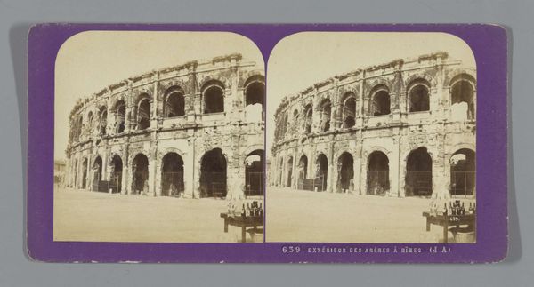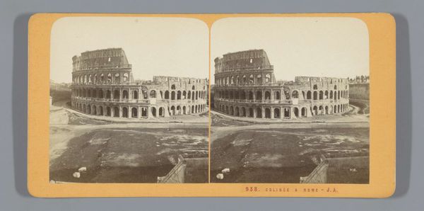 Giorgio Sommer created this stereograph of the Arena of Verona using the wet collodion process. The composition is structured around the symmetry and repetition of the Arena and formal gardens in the foreground. The circular form of the arena is echoed in the layout of the gardens, creating a visual harmony. The use of stereography adds a layer of complexity, and while the image is in monochrome, the tonal range captures texture of the stone and foliage, emphasizing the play of light and shadow. Through the visual language of photography, Sommer invites us to contemplate the Arena, a monumental structure and a site of public spectacle, transforming it into an object of aesthetic contemplation, detached from its original function. This photograph offers a lens through which we might consider the Arena not just as a historical artifact but as a constructed image, mediated by the photographer’s vision and the photographic process itself.