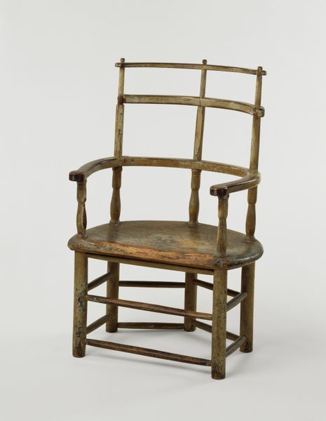Editor: Here we have Wolf Vostell's "Endogene Depression V," a concrete sculpture on a wooden table. The rough texture of the concrete contrasts so starkly with the simple lines of the table. How do you see this piece interacting with materiality and production? Curator: The core resides in the contrast. Vostell emphasizes the industrial, the mass-produced. The concrete, a ubiquitous material, is presented not as a foundation, but as a subject. The table, seemingly handcrafted, elevates this industrial block. Editor: So, it is about elevating the mundane? Curator: Precisely. By placing this concrete form on a pedestal, Vostell challenges the hierarchy between high art and everyday labor. Consider the act of construction, the pouring, the setting – it’s about the making. It invites us to analyze the labor of its making, and what is consumed through it. Editor: I never thought about concrete that way! Curator: Vostell compels us to see the potential for beauty and meaning within the most ordinary materials.