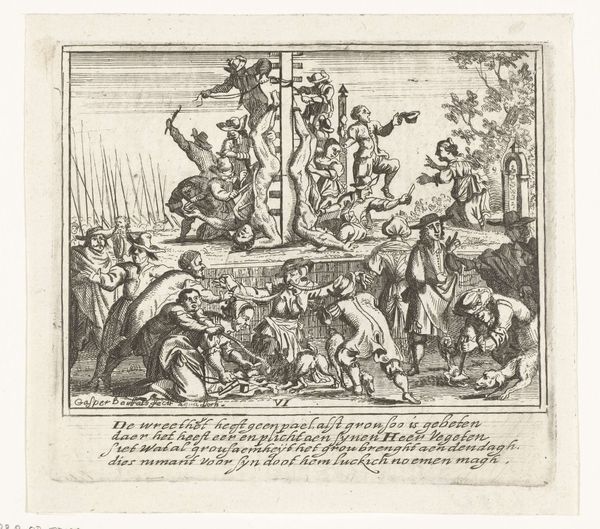 Crispijn van de Passe II created this engraving, "Circe verandert Odysseus' metgezellen in zwijnen", sometime in the 17th century. It depicts an episode from Homer's Odyssey, in which the sorceress Circe transforms Odysseus's men into swine. The print was made in the Netherlands, a place and time in which the rise of humanism led artists to explore classical literature. It's worth considering how this image, produced for a print market, participates in a broader cultural landscape where classical stories were being re-evaluated and re-imagined through a Christian lens. Van de Passe's engraving doesn’t merely illustrate a story; it interprets it through the visual language available to him at the time. The transformation of Odysseus’s men becomes a potent symbol, perhaps of moral degradation. Understanding this print means delving into the intellectual and artistic debates of the 17th century. Examining the Dutch print market, the circulation of classical texts, and the evolving role of art in shaping moral and intellectual life. The artwork serves as a lens through which we can examine the complex interplay between art, culture, and society.