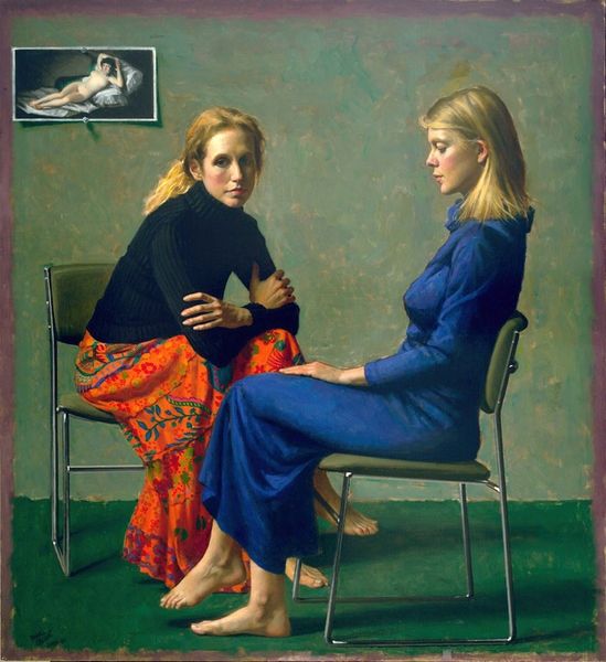 Karoly Ferenczy captured "Double Portrait (Béni and Noémi)" using oil on canvas, though the exact date remains unknown. The figures, set against a deep blue backdrop, present a striking contrast in posture and attire. Consider Béni's pose, arm raised, a gesture echoing classical figures in moments of contemplation or revelation. It evokes the contrapposto seen in ancient sculpture, yet here it's imbued with a modern casualness. This motif, reaching back to antiquity, reappears across centuries. Noémi’s more formal stance and dress link her to the tradition of portraiture meant to convey social status and virtue. Blue, the dominant color, often symbolizes depth, stability, and faith. Ferenczy uses this color to create a mood that encourages introspection. The painting pulls at the threads of collective memory, blending classical ideals with modern sensibilities, revealing how potent emotional states can be conveyed through subtle symbolic language.