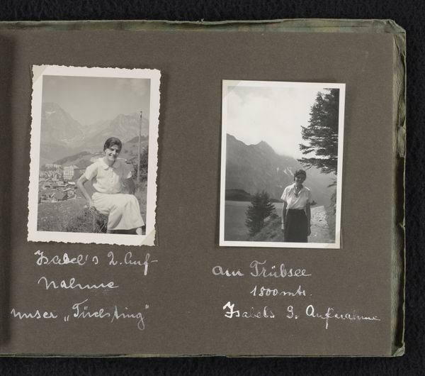 Editor: This gelatin-silver print titled "Else Wachenheimer-Moos and an unknown woman on the balcony of a hotel, August 1932, Eibsee (Bavaria)" shows two women posing together. There’s an almost casualness about it, a real slice of life. How do we understand this sort of informal snapshot in its time? Curator: It’s tempting to view this as just a personal memento, a record of a summer holiday, but photographs like this were profoundly shaped by the rising tide of socio-political anxieties in 1930s Germany. Consider the family’s history - labelled "familie Wachenheimer". What does it mean to document a life so closely at this moment? Editor: Are you suggesting the very act of documentation became a form of resistance or preservation? Curator: Precisely! Photography offered a way to capture and solidify personal narratives against the backdrop of increasing state control and persecution. It becomes a tool to say "we were here," "this was our life," in the face of a regime aiming to erase their existence. The Eibsee location becomes meaningful, too—a temporary escape, perhaps, yet still framed by the ever-present context. Editor: So, what seemed like a simple snapshot becomes a powerful act of bearing witness. Knowing the family’s story certainly shifts how I see it. Curator: It’s a reminder that even seemingly innocuous images can be deeply imbued with historical weight and speak volumes about the public role of art and image-making in the face of adversity. I now wonder who preserved the image and if the Wachenheimer family was aware that it was a witness for their future existence. Editor: I'll never look at old family photos the same way again.