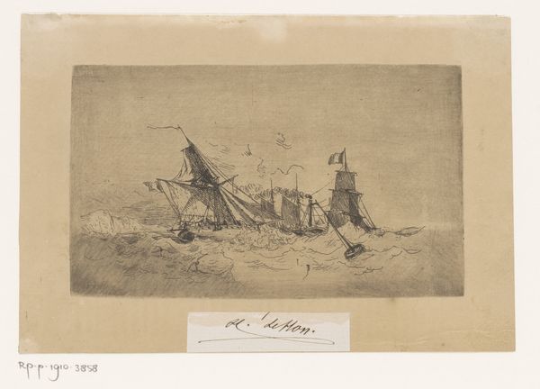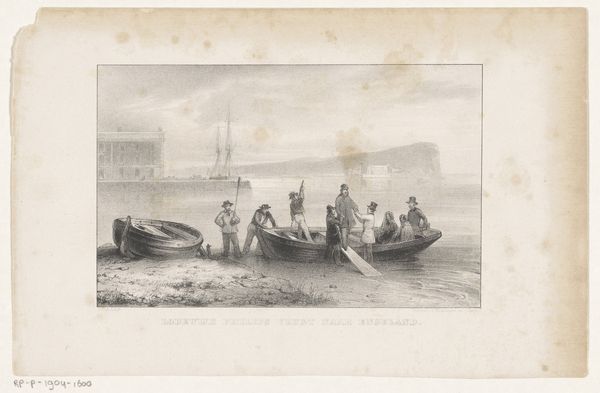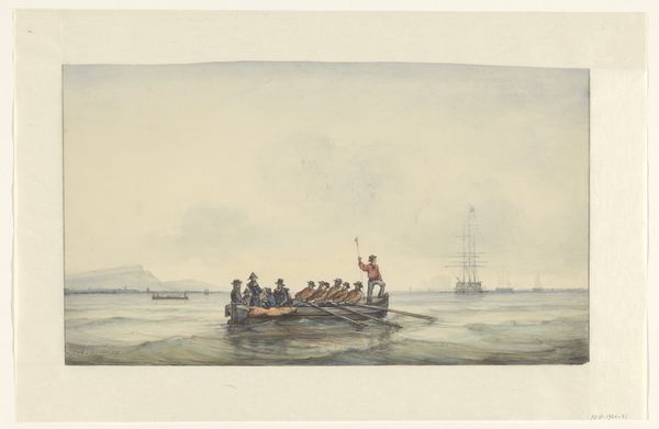 Editor: This is "Zeven mannen in een roeiboot," or "Seven Men in a Rowboat," by Charles Rochussen, made before 1843. It’s a pencil drawing on paper, currently at the Rijksmuseum. The textures that he creates with just pencil are amazing. What do you make of this drawing? Curator: It's interesting to consider the labor embedded within this seemingly simple scene. Note the sharp lines, which gives precision to the drawing, perhaps intended to mirror the labor-intensive rowing that the men in the boat have to perform. Look closer; is that fishing equipment on the boat? We could then see their labor contributing to an economic system dependent on that catch. Editor: Oh, you're right, it might be a net. It’s interesting how a humble drawing on paper speaks to broader ideas of work! So, the materials tell a story, too? Curator: Precisely! Pencil and paper were increasingly accessible during that period. The artist using these accessible materials allows us to question traditional distinctions of "high" and "low" art, prompting questions about whose labor is valued, and by whom. Is the art in making the drawing or from their work on the sea? Editor: That is something to consider. It reframes how we should appreciate art. Thanks for sharing this different perspective! Curator: And thank you! It's a reminder that looking at art through the lens of material conditions and labor can reveal fascinating social narratives.