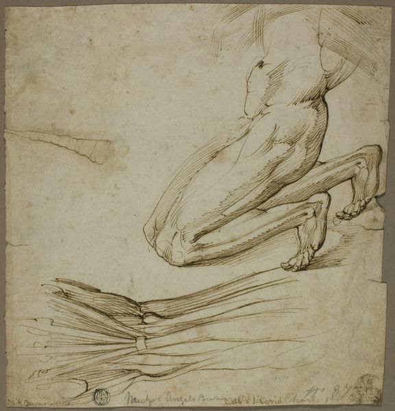 Editor: Here we have "Skeleton of a Dog," a pencil drawing by Cornelis Saftleven from 1666. There's something stark about it, yet the draftsmanship is so delicate. How do you interpret this work? Curator: Beyond the artist's skillful technique, consider the context. Seventeenth-century Dutch art often grappled with mortality, but representations of animals raise specific questions. This wasn't simply an anatomical study; it might reflect ideas about domestication, power dynamics, or even class. Dogs, for example, were often symbols of loyalty, but also subservience. What does it mean to depict this subservience as a fragile skeleton? Editor: That's fascinating! I hadn't considered the power dynamics inherent in the human-animal relationship. It feels almost like a commentary on the vulnerability of those in service. Curator: Exactly! And let's consider Saftleven's own position. As a member of the Dutch Golden Age art world, what socio-political forces were at play that influenced his gaze? The focus on anatomical precision alongside this potential commentary on societal hierarchy provides an interesting tension. Does the choice of a dog skeleton, rather than a more 'noble' animal, hint at something? Editor: It's definitely given me a lot to think about! I’d initially focused on the artistic skill, but you've made me realize that even a seemingly simple drawing can open up conversations about so much more. Curator: Precisely. Art is never created in a vacuum. Engaging with its social and historical backdrop is crucial to understanding its multi-layered meanings. Hopefully, this prompts us all to reconsider the power structures embedded within art and representation.
