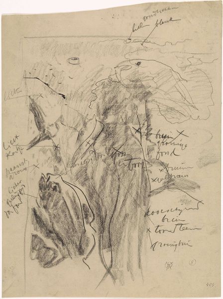 Gerrit Willem Dijsselhof made these studies of a red mullet, with colour notes, using graphite and charcoal on paper. Dijsselhof’s graphic choices speak to a culture steeped in the aesthetics of drawing as a mode of scientific inquiry and artistic expression. Graphite and charcoal, the core materials, aren't just mediums, but messengers of intent. Their capacity to capture light and shadow, and to articulate form with nuanced precision, makes the image more than a sketch; it’s a tactile encounter with the natural world. The way the artist coaxes the graphite and charcoal to depict the fish has a social significance. This approach reflects an era where observation and analysis were prized virtues, and artistic skill was seen as a window into understanding the very essence of life. Dijsselhof’s drawing is not merely representational, but rather an invitation to consider the interrelationship of art, science, and society.
