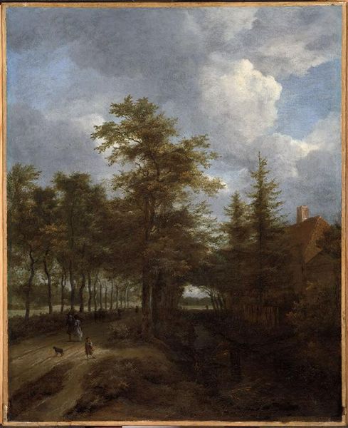 George Lambert painted this "Woody Landscape" in the 1700s, a period where landscape painting served as a backdrop to societal life. This canvas depicts the English countryside, but it is also a stage for human interaction. The figures are rendered in a way that reflects the social hierarchy of the time, as they are meticulously placed within the landscape, in order to represent the relationship between man and nature. The presence of people in the painting makes one consider the role of labor and leisure in the 18th century, highlighting an idealized, romantic vision of country life that often obscures the realities of rural poverty. It evokes a sense of nostalgia for a simpler time, and prompts us to consider the ways in which our perceptions of nature are shaped by cultural ideals and social structures.