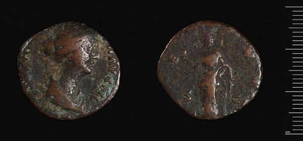 Curator: Here we have a sestertius of Gordian III, a Roman coin dating back to antiquity. Look at the wear on that surface. Editor: It's humbling, isn’t it? To think of all the hands this little bronze coin has passed through, all the things it has bought. You almost feel the weight of history. Curator: Precisely. The patina speaks volumes. Notice the details still visible: the emperor's profile, the inscription around the edge, and the figure on the reverse, likely a depiction of a Roman deity. Editor: I’m struck by the subtle textures, almost like miniature landscapes in the relief. And the circular format, like a contained world. Curator: It’s a tangible link to a distant past, a reminder of the everyday lives and grand ambitions of the Roman Empire. Editor: This little coin is more than money, it’s a portal.