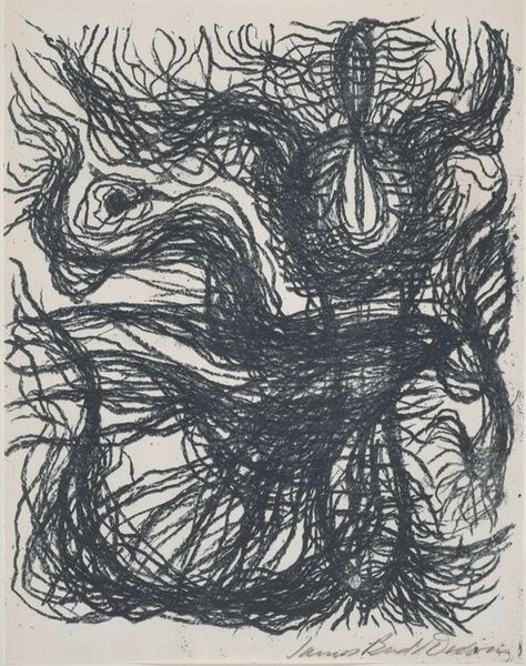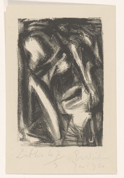 Editor: This is Valentijn Edgar Van Uytvanck's "Abstracte compositie" from 1918, made with pencil on paper. It feels so turbulent, almost violent, yet there’s also something captivating about the swirling forms. How do you interpret this work? Curator: Looking at the turmoil in 1918, during and after the First World War, I wonder if we can view this drawing as a reaction to widespread social and political unrest? Think of Expressionism and its relationship to inner experience. Can you see in the spiraling vortex the way the artist communicates their psychological state of the world, a world being turned upside down? What comes to mind when you consider this form against the backdrop of immense human suffering and societal upheaval? Editor: It’s almost like the center is a drain, sucking everything down. Maybe the artist felt helpless? Were other artists exploring similar themes? Curator: Absolutely. The Expressionists as well as artists associated with the Dada movement questioned established values and norms, challenging the structures that led to the war in the first place. It reflects a radical break with tradition. Considering gender, can we also ask if societal constraints led the artist to seek freedom of expression in abstraction, where perhaps traditional biases played less of a role? What do you make of the lack of any explicitly representational figures? Editor: I hadn’t thought about it that way, but the abstraction allows it to be universal. It's not one person's struggle; it is everyone's. Thanks! Curator: Precisely. And considering Van Uytvanck’s biography, we can go on and explore themes of national identity in times of war…There’s so much we can uncover.