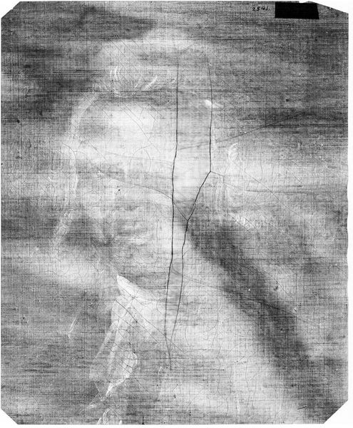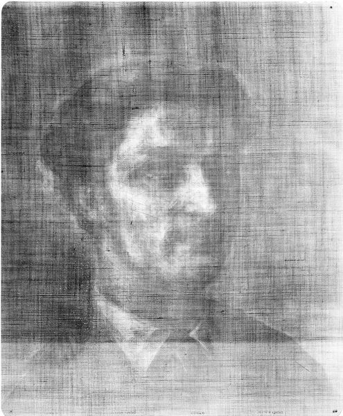 Editor: So, this is an X-radiograph of "George Washington," by John Johnston. It’s… eerie, almost ghost-like. What do you see in this peek behind the painting's surface? Curator: Well, it’s like looking into the soul of a painting, isn’t it? I find myself wondering about the choices, revisions, the artist's hand, and even the hidden damages that time inflicts. It’s as if Washington is whispering secrets only the X-rays can hear. Does it make you think differently about portraiture? Editor: Absolutely! It's like archaeology, uncovering layers of history. I’ll never look at a painting the same way again. Curator: Precisely! It's more than just an image; it’s a conversation across time.