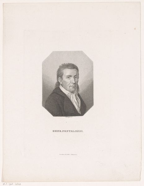 Curator: This is a portrait of Christian Ludwig Nitzsch, created between 1792 and 1837 by Johann Christian Benjamin Gottschick, primarily using pencil and engraving techniques. Editor: My first impression is its restraint. The subtle gradations of graphite create a surprisingly intimate, even delicate, rendering of the sitter. Curator: Indeed. Portraits of this era—this is considered part of the Neoclassical movement—were frequently tied to social status and scientific achievement, presenting figures of authority. The man depicted here, Christian Ludwig Nitzsch, was himself a noted professor of zoology. The sober rendering aligns with Enlightenment values, portraying intellect and accomplishment. Editor: Precisely. Notice the clear, precise lines defining Nitzsch’s features and attire, but how these are then softened by the sfumato effect achieved by the pencil. This subtle play is not just aesthetic; it seems carefully calculated to humanize a man of stature. The light and shadow emphasize structure but without severity. Curator: Let's also think about the production of this artwork. The portrait likely circulated as a print, potentially accompanying scholarly publications or as a commemorative item. This highlights how images and their reproduction could shape reputations. Nitzsch was very prominent in his time. Editor: It strikes me that Gottschick focused keenly on Nitzsch's face. It brings a psychological dimension that elevates this portrait. Observe how the mouth, subtly shaped, holds a barely perceptible air of solemnity, echoed by the thoughtful gaze of the eyes. Curator: And what do you make of the clothing, almost entirely monotone and unadorned? It definitely contributes to the feeling of respect and dignity. It could be interpreted as emphasizing his scholarly dedication, placing knowledge and intellect above outward appearances. Editor: In the absence of vivid color, texture gains even more import. Note how the artist uses line direction to differentiate materials -the velvety, shadowed pile of his jacket from the smoother forms of his cravat. This contrast gives volume without overwhelming the modest tonality. Curator: A print like this circulated through complex networks of patronage, production, and consumption, reflecting the social currency of portraiture during this period. This image participates in the historical formation of celebrity and the enduring appeal of Neoclassicism as a way of presenting figures of note to society. Editor: Ultimately, while being fairly academic in style, the careful use of light and the soft rendering create a rather approachable likeness of Nitzsch. Curator: I agree. There’s a fascinating intersection of formality and intimacy achieved here, that perhaps offers more than it appears at first glance.