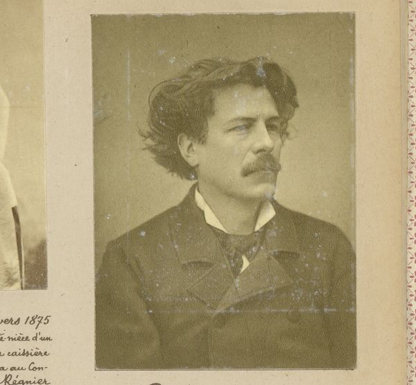 This photograph, titled "Portret van Alphonse Daudet," captures the French novelist Alphonse Daudet, though the artist remains anonymous. The portrait reflects the 19th-century interest in capturing the likenesses of prominent cultural figures. Daudet, positioned leaning casually, exudes an air of intellectualism and artistic sensibility, emblematic of the period's Romantic and Realist movements. The composition is simple, yet it speaks volumes about the sitter’s identity and social standing, as photography began to democratize portraiture, making it accessible to a broader segment of society beyond the traditional elite. Consider Daudet's gaze and posture. What does it say about his attitude towards the viewer, and how does this portrayal contribute to the construction of his public persona as a writer? This photograph, though modest in scale, encapsulates the era's evolving relationship between art, identity, and representation.
