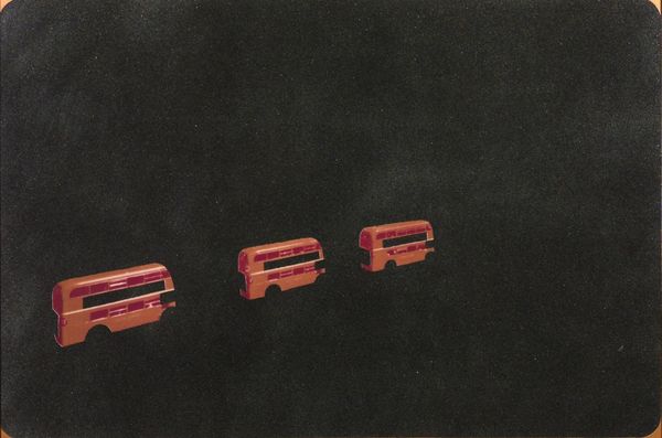 Editor: Here we have Konrad Klapheck's "The War," painted in 1965 using acrylic. The severe geometry set against that ominous, deep red backdrop evokes a strange sense of cold aggression, almost industrial. How do you interpret this work? Curator: Klapheck painted "The War" in a moment marked by the Cold War's simmering anxieties, and the rise of mechanized conflict. Don't you see it as a commentary on the de-personalization of violence? Those geometric forms, those strange machines, are stand-ins for soldiers, armies, even nations, aren’t they? Editor: Yes, I can see that. But I am also getting this sense of alienation from it. Is Klapheck saying something about technology being emotionless when associated with War? Curator: Precisely! He is inviting us to consider how technology distances us from the human cost of war, masking the suffering behind cold, efficient forms. It removes the bodies, rendering the violence abstract, doesn’t it? And the repetitive nature of the shapes could echo the assembly line, making the machinery of war something automated and continuous. How does the painting makes you feel in relation to our current moment? Editor: Thinking about it now, it still feels very relevant, given how drones and AI are shaping modern warfare and international relations. Curator: Exactly! Art serves as a mirror reflecting societal anxieties and power structures. Seeing that the piece connects across decades makes one aware of how certain concerns still remain. Editor: I hadn’t really thought about its ongoing relevance until now. Thanks for providing such a nuanced historical context to see how the image of ‘War’ hasn’t evolved much despite progress in the arts and humanities!