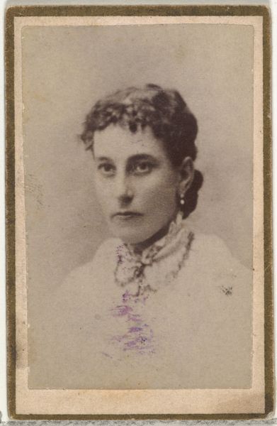 Curator: Isn't it wonderful how a single image can hold so much history, so much feeling? Jeremiah Gurney, a leading photographer in the United States, captured "Mrs. Sequin" sometime between 1869 and 1874. Editor: Immediately, what strikes me is the sepia tone – it’s practically a physical manifestation of "vintage," a layer of age applied not just to the image, but to our perception of it. What material are we talking about here, though? It’s not paper… Curator: Precisely! It's a gelatin silver print, so we see the alchemical blend of light-sensitive silver halides suspended in gelatin… rather magical, really. Editor: Yes, and mass-producible, so this could be a popular likeness that also demonstrates both wealth (a fine portrait!) and a rise in accessible ways for families to make a visual record. Did that elaborate necklace, that beaded extravagance, contribute to her name? Curator: Well, perhaps it did inspire the title. More broadly, the Victorians did love to adorn! But consider also the work that goes into producing photographic chemicals in the 1870s, processing these images, the labor of setting up the shoot… Editor: I like that. It reframes Mrs. Sequin's serene expression as part of an economic exchange – her time, her affluence – all transformed by these darkroom processes. Makes you wonder what she's really thinking, underneath that Victorian pose, and behind those beads! Curator: Right? She becomes almost an enigma, suspended between who she was and who the image allows her to be. It touches on a deeper human desire: to capture a moment, even to cheat time, as we might seek something eternal in this transient world. Editor: An illusion fostered by chemical compounds and careful craftsmanship. You know, contemplating all of this truly reveals how portraits aren’t mere likenesses. There are many more materials to consider besides the beads on her neck. Curator: Absolutely! This is what keeps me coming back; each viewing unveils a new layer.
