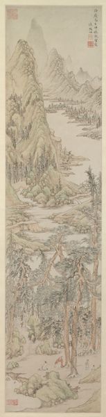 Ludwig Munthe created this landscape with a waterfall in the mountains using pencil and watercolor on paper. The loose application of watercolor gives a soft, ethereal quality to the scene, particularly in the rendering of light on the water's surface. The pencil work, especially in the foreground trees, offers a sense of structure. The combination of techniques results in varying textures. The process reflects a tradition of plein air painting – working outdoors to directly capture the atmospheric effects of a landscape. The relative ease of transporting paper and watercolor allowed artists like Munthe to explore remote and rugged terrains. Though seemingly a straightforward act of representation, landscape painting also played a role in shaping perceptions of nature, with some artists emphasizing idealized or sublime views. The making of this artwork is thus bound to broader social and cultural values. Appreciating how it was made adds depth to our understanding.
