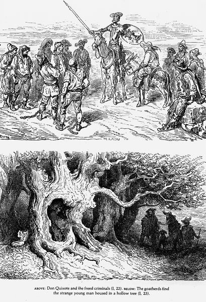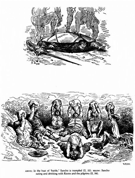 Gustave Doré created this illustration of Don Quixote, capturing a moment of pastoral delusion and humiliation. We see the Don, posturing as a shepherd, surrounded by symbolic animals. Sheep traditionally represent innocence and a pastoral ideal, harking back to biblical imagery of shepherds and flocks, but here, they seem almost mocking, indifferent to the Don's charade. The pigs, in contrast, represent chaos and degradation. In their overwhelming presence, they drag the noble knight down from his idealized vision. Consider the shepherd motif itself. From David tending his sheep to the Good Shepherd of Christian iconography, it represents care, leadership, and divine protection. Yet, here, the Don’s attempt to embody this role is farcical. The pigs' attack undermines any sense of nobility, exposing the delusion at the heart of Quixote’s fantasies. This symbol, as it is repeated, seems to have a cyclical progression, being revived, transformed, and imbibed with new significance as it traverses diverse historical milieus.
