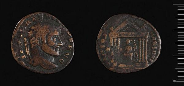 Editor: Here we have a coin of Samos under Gallienus, its material giving it such a timeworn look. What do you see in this piece? Curator: This coin represents more than just currency; it's a statement of power and identity in a tumultuous period of Roman history. Gallienus sought to legitimize his rule amidst crisis, and this coin, minted in Samos, likely served to connect him with the local population and their cultural heritage. Editor: How so? Curator: The imagery, perhaps a local temple, interwoven with Gallienus’s image, speaks to a negotiation of power. How does situating the coin within broader intersectional narratives impact our understanding? Editor: I guess it highlights how even something as small as a coin can tell us about identity and politics in ancient Rome. Curator: Exactly. It challenges us to consider whose stories are told and how they are told, even through something as seemingly mundane as currency.