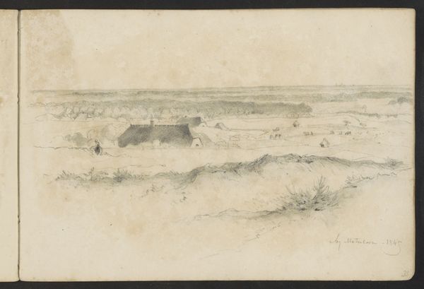 Editor: This is a gelatin-silver print from before 1894 by Hendrik Herman van den Berg, called "Kinderen graven geulen op een strand"—"Children Digging Ditches on a Beach." I’m really struck by the subtle tonal range. What draws your eye when you look at this image? Curator: Immediately, the horizontal composition presents a division—sky, sea, and land. This invites the viewer to analyze the gradations within each section. The restricted palette actually amplifies the textural contrasts, from the smooth sky to the granular sand. The figures, dark accents against the pale background, punctuate this horizontal rhythm. Note how van den Berg places these figures – are they arranged randomly, or is there a deeper visual structure at play? Editor: That's interesting. They are all oriented differently; it feels chaotic. Curator: Perhaps “dynamic” is a better descriptor. Look at the angles formed by their bodies, some upright, some bent at acute angles. The slight variations prevent the composition from being repetitive, generating visual interest without sacrificing balance. Have you noticed how the figures almost seem like compositional devices to direct your eye? Editor: Yes! You notice a line moving from left to right, with each kid slightly further back, as though there are multiple planes to focus on. Curator: Precisely. This calculated arrangement shows careful formal consideration, far beyond simply recording a scene. Even the light contributes, defining the shapes with just enough detail to differentiate them. What would you say is the purpose of these choices? Editor: The purpose seems to make order and geometry from this everyday moment at the beach! Thank you; I’ve learned so much. Curator: A pleasure; looking closely reveals that a photo like this one is about arrangement, not just image capture.