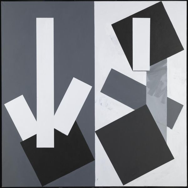 Victor Vasarely created this painting, 'Cingshà', using oil on wood. The artwork is concerned with the ways that geometric forms can create dynamic visual experiences, connecting it to broader modernist trends of abstraction and optical art. The stark black and white contrast generates a sense of movement. The hard edges of the geometric shapes create a visually stimulating experience. Vasarely was Hungarian-French, and his work reflects a post-war optimism toward technology and industrialization. His style, known as Op Art, was commercially popular, appearing on everything from album covers to fashion designs. To truly understand Vasarely's project, one might look to the writings of art critics like Clement Greenberg, who championed abstraction as the most advanced form of art in the mid-20th century. In the end, studying the social and institutional contexts is crucial for interpreting the meanings and impact of this kind of artwork.