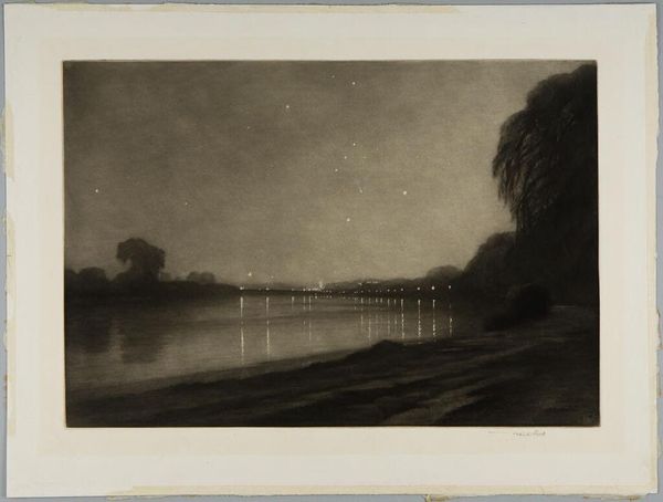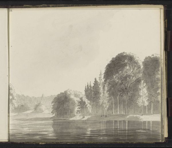 Editor: This is Jan Veth's "Berglandschap aan een meer," painted in 1878, using watercolor, and housed here at the Rijksmuseum. It’s… somber, almost oppressively grey, but also really peaceful. What catches your eye when you look at it? Curator: Well, first off, let me say I adore the understatement of it all! The muted palette isn't just about gloom, I think, it's about nuance. Veth invites us to really *feel* the stillness. Notice how the reflected light on the water’s surface softens the harshness of the overcast sky, it almost feels hopeful, doesn't it? I also get a sense of vastness. Does it feel expansive to you, or claustrophobic? Editor: I see what you mean by hopeful... it feels both expansive and closed-in. Like a huge, empty stage just before something dramatic happens. It almost feels staged, like a movie set… what would you call Veth's style? Curator: I see where you're going with the "movie set" analogy. Very intuitive! I'd say it sits comfortably at the crossroads of realism and early impressionism. There's a dedication to capturing the landscape *as it is*, but also a sensitivity to light and atmosphere that's very Impressionistic. Those blurred lines, the almost-there details… It's a very "in-between" space, and that, to me, is where its power resides. Editor: So it's the tension, the uncertainty, that makes it work. It definitely adds more depth to it than I initially saw. Curator: Exactly. The beauty is in the subtlety, the whispered promises rather than loud pronouncements. What started as somber now has a hidden song within it! Editor: I love that: “a hidden song.” I’ll remember that while I keep looking.