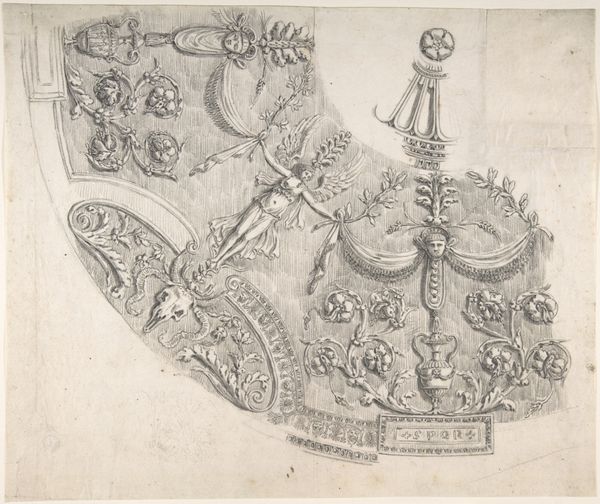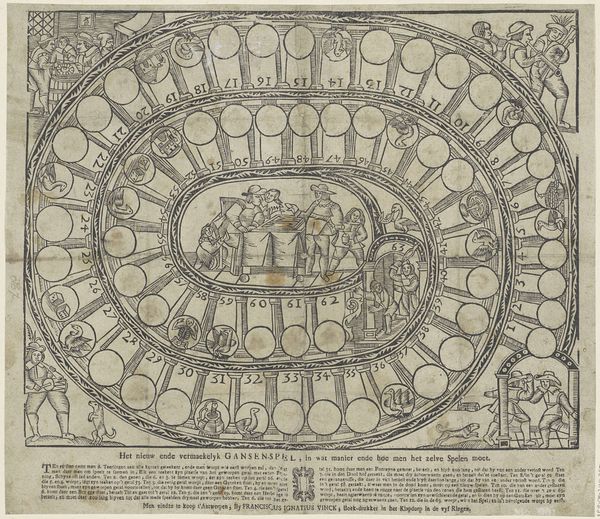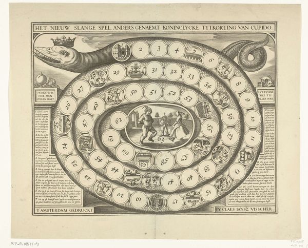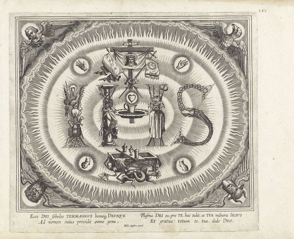 Editor: This artwork, created between 1608 and 1630 by Michael Snijders, is an engraving titled "Ornament: Monogram van Maria: MRA opgebouwd uit Mariasymbolen," a monogram of Mary comprised of Marian symbols. It's intricate and definitely symbolic, with the letters themselves forming miniature scenes. What do you see in this piece? Curator: The layered symbolism is striking, isn’t it? We can explore this as a powerful example of visual rhetoric. Think about the historical context: the role of the Catholic Church, particularly the veneration of Mary, was undergoing significant upheaval during this period, particularly during the Counter-Reformation. How does this elaborate visual display of Marian symbols serve to reinforce or negotiate that power dynamic? Who do you think was the intended audience for this print and what message do you think they were intended to receive? Editor: It's interesting to think of it as an assertion of power through religious iconography, almost a branding strategy. So the symbolism wasn't just devotional; it was a statement. The details in each letter, and the overall composition with the radiating light...they all serve a persuasive purpose. Curator: Exactly. Each individual symbol functions within a larger narrative – a constructed, politically charged narrative. What are some of the symbols you recognise and what do they signify in this context? Thinking about how this imagery might reinforce certain gender roles of the time. Editor: I see the crescent moon, often associated with Mary, and what looks like a walled tower within the "A." Maybe those relate to purity and strength, upholding the virtues ascribed to her. That light emanating from the center really does seem to emphasize those concepts and promote those ideals in a particularly effective and engaging manner. I hadn't thought of it in terms of gender roles, but of course that plays a major part in the overall work and especially the cult of personality around her as a prominent, historical figure. Curator: Considering the intersection of faith, power, and gender allows us to appreciate the piece on a far deeper level than purely aesthetic enjoyment. These early modern prints can unlock surprising perspectives on societal pressures from centuries ago. Editor: I never thought about analyzing religious art with such a critical and analytical lens. It makes you appreciate the layers of meaning artists embedded in their work, and that continue to exert an influence even now.