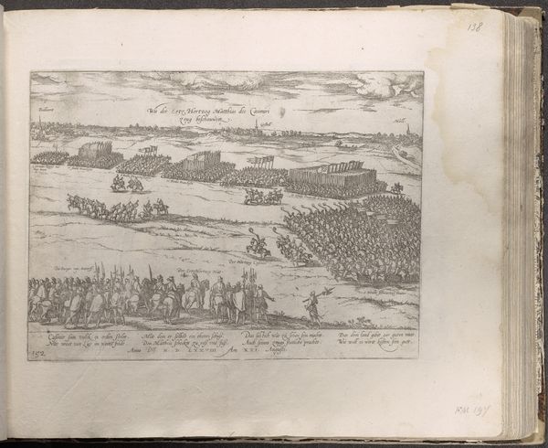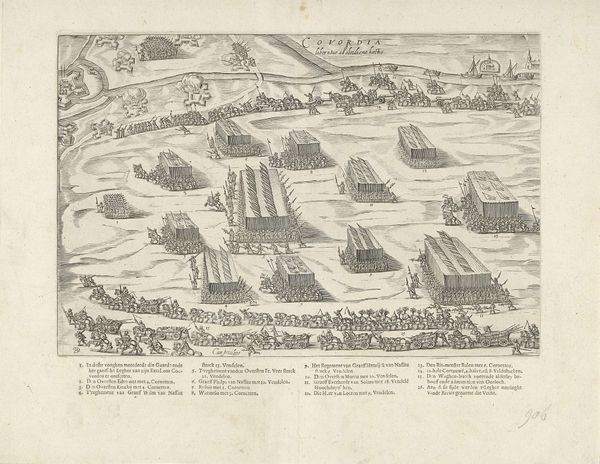 This is an engraving titled "Gezicht op Constantinopel," or "View of Constantinople," made in 1726 by an anonymous artist. The dominant visual experience is one of intricate detail and a clear, structured composition. The cityscape is meticulously rendered with fine lines, creating a dense, almost textured surface, while the waterways provide a contrasting sense of openness and flow. The engraving's structure relies on a careful arrangement of forms to convey both information and aesthetic appeal. The composition divides the scene into distinct zones: the city itself, the waterways, and the surrounding land, each rendered with a specific level of detail. This organization reflects the Enlightenment's interest in systematic observation and categorization of the world. The high vantage point flattens the image, emphasizing the two-dimensional surface and highlighting the constructed nature of the view. The use of line and perspective serves to create a sense of depth while maintaining a degree of abstraction. This print invites us to consider how representations shape our understanding and appreciation of complex realities.