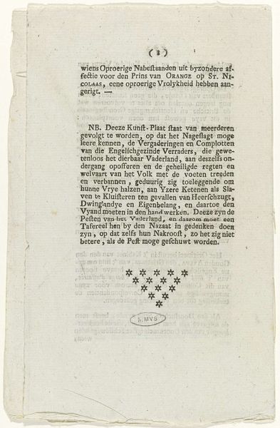 Curator: So, what strikes you first about this "Bladzijde uit het Oera Linda-Bok" from 1875? Editor: Well, first off, it’s at the Rijksmuseum, which I find kind of surprising. I mean, looking at it, it looks like a page from a very old, possibly illuminated manuscript or something… the old engraving style text and those… diagrams? They give it a very historical, maybe even mystical mood. How do you interpret this work? Curator: It's precisely that “mystical mood” you identified that interests me. This page isn't just an old document; it's a fragment of a constructed historical narrative, specifically, a 19th-century Frisian nationalist text. Have you thought about what that means? Editor: I guess not...I was just kind of taking it at face value. Frisian nationalist? Curator: Yes, it’s deeply embedded in ideas of identity and origins. The Oera Linda Book was presented as a genuine ancient manuscript. Now widely considered a hoax. Its importance lies in what it reveals about the construction of identity. How narratives, even false ones, can be incredibly powerful in shaping cultural identity. Do you think understanding its true nature changes how we should view it? Editor: That does shift things a lot. It's strange to think about something pretending to be historical being displayed in a place dedicated to genuine history! Curator: Exactly! Now, consider the visual elements again—the old engraving style text, the diagrams. How do they contribute to this constructed history? Editor: I see your point. They are trying to *look* authentic and ancient to add weight to the fabricated history. It’s like they're using aesthetics to try to convince people of its legitimacy. Curator: Precisely. The Oera Linda Book serves as a potent example of how history can be invented. The social context and politics of the time, it provided a mythical past for the Frisian people. Editor: Wow, that’s a lot to consider! I definitely see the piece differently now, more critically I suppose, by focusing on historical narrative and construction of identity!