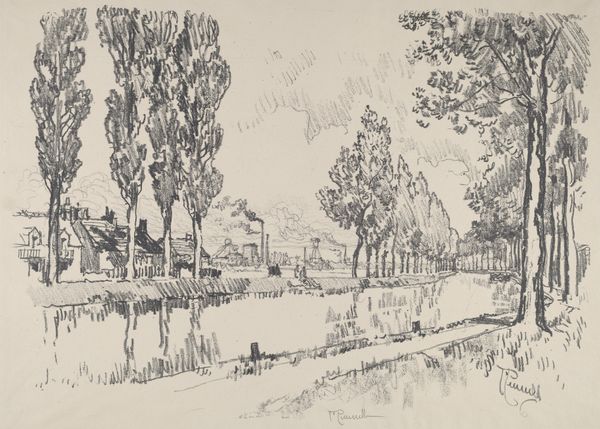 Kees Stoop made this print of a park near the water, with etching, dry needle and aquatint techniques. Stoop was a Dutch artist, born in 1929, whose work captured the serene landscapes of the Netherlands. In this print, Stoop uses a monochromatic palette to evoke a sense of tranquility and introspection. The trees lining the waterfront are depicted with delicate lines, creating a textured effect that invites the viewer to immerse themselves in the scene. Stoop's landscapes offer a respite from the industrialization that was reshaping the Dutch landscape during his lifetime. He seems to be asking, how do we preserve the quiet, green spaces that nurture our souls, even as the world changes around us? There's a quiet beauty here, one that resonates with anyone who's sought refuge in nature. Stoop's print is a reminder of the simple, yet profound, connection we have with the natural world.