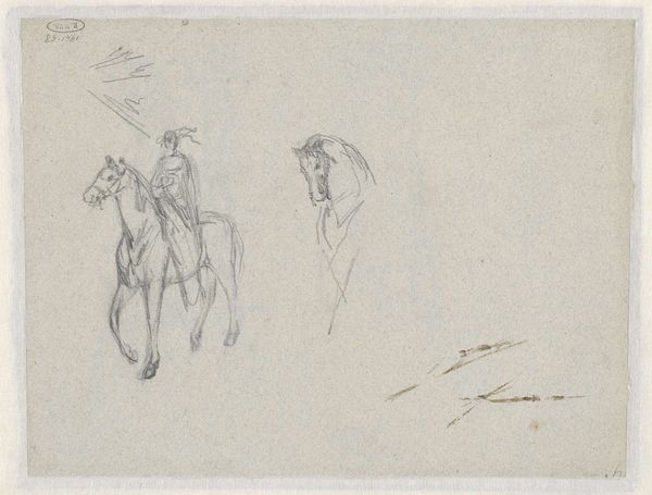 Here, we see Henri de Toulouse-Lautrec's "Sheet of Sketches," created with graphite on paper. The work captures a dynamic scene, possibly a horse jumping event, rendered with an economy of line. The composition is open, allowing the eye to move freely between the sketched figures of horses, dogs, and architectural details. The sketches present a semiotic landscape where each element, from the posture of the horse to the geometric rendering of the buildings, acts as a signifier. The rapid, almost frenetic lines suggest movement and energy, challenging the static nature of traditional drawing. The lack of finish is not a deficiency but a deliberate choice that invites us to contemplate the process of representation itself. Note how the unfinished quality destabilizes fixed meanings, allowing for an interpretation that is fluid and contingent. This resonates with broader post-structuralist ideas where meaning is never fully determined but always in the process of becoming. This sheet encapsulates the dynamism and intellectual curiosity of its time.