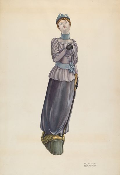 This drawing of a doll, made by Du Bois sometime between 1775 and 1875, has a quiet charm, right? The way the artist used watercolor feels so gentle, like a soft memory. You can almost feel the handmade quality, the imperfections that give it character. I’m drawn to the subtle washes of color, how they create depth and form without being too precise. The pink shawl around the doll's neck is particularly tender. See how the color bleeds slightly, giving it a delicate, almost ethereal quality? The texture is smooth, the brushstrokes minimal. It's as if Du Bois wanted to capture the essence of the doll. It reminds me a little of Balthus, but with a softer edge. Both artists have this way of imbuing their subjects with a sense of quiet mystery, but Du Bois’s piece feels more intimate, more personal. It's a reminder that art doesn't always need to be loud or complicated to be deeply moving.