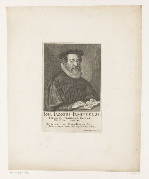 Christian Fritzsch made this print, “Portret van Andreas Pouchenius,” sometime in the 18th century. At this time, portraiture was an important tool for communicating status and identity. Here, Andreas Pouchenius is identified as the third superintendent in Lübeck. This was a time when religious identity was a central aspect of social and political life. Portraits of religious figures were not just about capturing a likeness, but about presenting the individual as a figure of authority and moral standing. Notice how the portrait is framed within an oval, set against a patterned background, with the Pouchenius family crest displayed in the upper-left corner. Pouchenius is depicted holding a book, a symbol of knowledge and piety. These elements work together to communicate the sitter's identity. How does this image uphold or challenge the traditional representations of power and status of the time? While this is a rather straightforward portrait, I wonder how it would be different if the sitter were a woman.