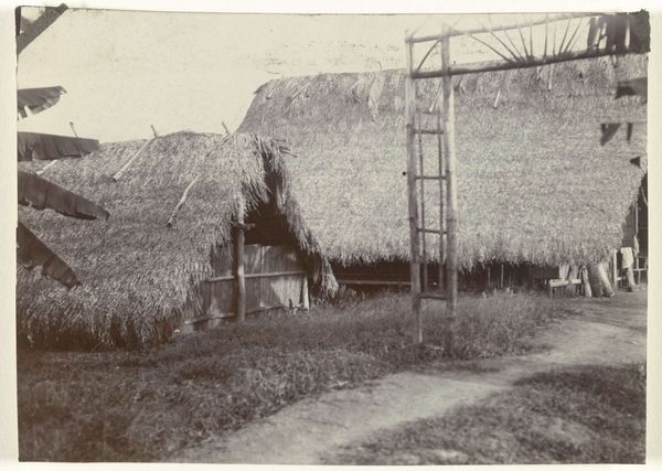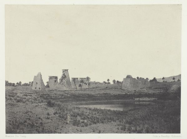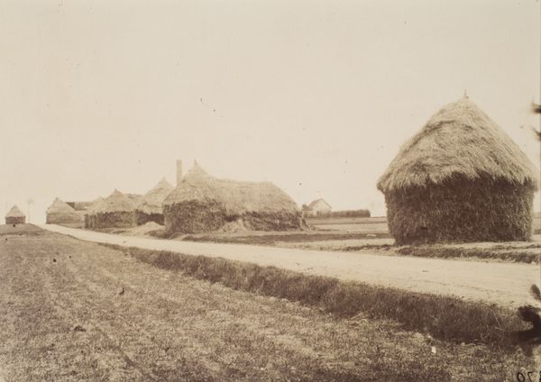 Linnaeus Tripe captured "View of the N. E. Angle of the Tirambur Pagoda" using photography, a relatively new medium at the time. The sepia tones and the sharp focus create a detailed yet somewhat dreamlike landscape. Note how the composition is structured around the contrast between the solid, geometric forms of the stone buildings and the organic, thatched roofs of the adjacent structures. Tripe's choice to emphasize this juxtaposition is significant. The imposing pagoda, with its precise lines and evident permanence, stands in stark contrast to the temporary dwellings. This tension underscores the themes of power, religion, and the everyday lives of the people who inhabit this space. The photograph's detailed textures, from the crumbling stone to the coarse thatch, invite a semiotic reading of the cultural and historical context. Consider how Tripe destabilizes a fixed understanding of the site. What could be seen as simply a topographical record becomes a complex visual statement. The image functions as both document and commentary, prompting us to question what we see and how we interpret the cultural signs within it.