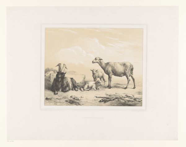 Curator: This etching from 1874 is entitled *Køer ved stranden*, which translates to Cows by the Beach, and was created by Otto Haslund. Editor: There's a stillness here, isn’t there? A hazy quiet that I find immensely calming. The limited palette evokes a sense of somber reflection. Curator: The magic of etching, no? Stripping down to the essentials of line and tone. You’re right, the subdued nature allows us to focus on the composition itself. These cows, seemingly content, become these contemplative figures almost...like wanderers. Editor: Absolutely. And I find myself considering what it meant to depict cows in this way at this moment in history. Realism in art often functioned as a democratizing force, shifting artistic focus towards everyday life and challenging established hierarchies. Does this pastoral scene represent an idealized version of rural life in Denmark? Is there a comment being made about land ownership or agrarian labor? Curator: I appreciate you grounding my romanticism! Of course, we can't ignore that context. What intrigues me, though, is the simplicity – that unadorned presentation of subject. You have these cows, the water, the ambiguous sky... Editor: Ambiguous in ways that could certainly be viewed as intentionally social. I also want to emphasize the animal rights perspective here: cows and animal rights were definitely not topics of wide, mainstream discourse. If not romanticizing these beautiful cows and if not social critique, perhaps this image should stand on its own terms as advocating for awareness and compassion regarding non-human lifeforms. Curator: Interesting. I can definitely see your perspective and agree that it gives food for thought, considering that in later life the artist gave art lessons, a very charitable thing to do! In addition, I enjoy seeing this simplicity of approach and it being paired up against nature. There is the sea in the distance too – like it is ready to wash over and consume this beautiful etching. Editor: Well, thinking about it, both perspectives add to the appreciation of the work. Thank you, I found this a truly engaging reflection. Curator: As did I, with both of us discovering such novel connections!