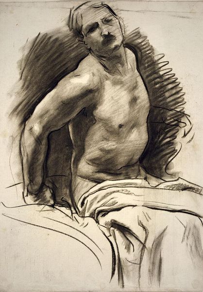 Curator: It feels like a scream captured in graphite. Editor: Indeed. This drawing by Käthe Kollwitz, entitled "Death Seizing A Woman", dates from 1934 and is a potent example of her exploration of death and human suffering through the medium of charcoal and pencil. Curator: Charcoal allows for such intense tonal variation. Look at the texture – it feels coarse, almost like burlap. The intense black smudges pull you in. What kind of paper would have even held this much charcoal? The physicality of this act feels important. It speaks of raw, unflinching labor. Editor: The German Expressionist movement was very focused on such subject matter, of the human form against a backdrop of overwhelming struggle. And while much of the contemporary art world had shifted its gaze, Kollwitz remained a forceful figure, documenting what she saw happening around her, and making potent visual arguments about class, war, and ultimately loss. The drawing’s place within art history demonstrates her unflinching perspective. Curator: But the rawness... you can see how the graphite has been worked and reworked. It really focuses my attention not just on the image itself, but the hand that created it, grappling with material, forcing it into shape. I wonder, what erasers were available to her at that time? How much did that constrain or augment the iterative process? Editor: Knowing Kollwitz lived through the first World War, and witnessed the rise of Nazism at the time, deeply affected the tone and style of her work. Images of mourning and struggle became part of the public conscience. This drawing isn't just a representation, but an outcry about a culture undergoing intense, horrific change, and an indictment against the political powers at play. Curator: It's not just the event, but the means of rendering it, the tangible, almost brutal use of the material that transmits so much visceral meaning. Editor: And its presence in major exhibitions, then and now, continually raises the issue of responsibility that society has to its most vulnerable. Kollwitz was clear-sighted in this. Curator: I keep seeing in my mind, those workers crafting their art in the factories! I appreciate these poignant juxtapositions—it adds so much to what I perceive here today! Editor: It offers a complex dialogue between artistic intention, social consciousness, and how these artworks enter and influence the cultural sphere.