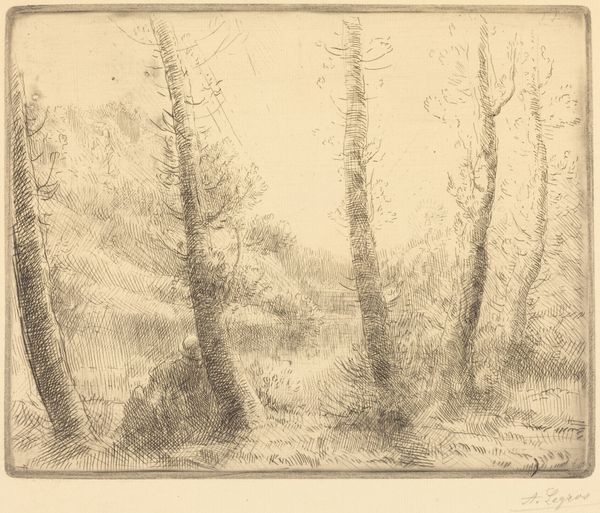 Jakob Maurer made this drawing of birch trees with graphite and colored pencil. It's a combination of readily available materials, humble stuff, and that's part of its appeal. The support, the paper, is a mid-tone grey-brown. This allows Maurer to work reductively, using graphite to build up the darker tones of the forest interior, and colored pencil to add highlights and texture to the birch trunks and foliage. The visible strokes give the landscape an immediacy, as if caught in a fleeting moment. The drawing has an unpretentious quality, and it almost feels like something that anybody could do. Yet, there is something so skillful in the handling of these ordinary materials. With so few lines, he evokes the atmosphere of the forest. It serves as a reminder that even the most basic materials, when wielded with skill and sensitivity, can produce extraordinary results.