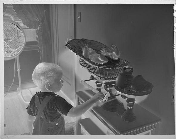 Editor: Here we have an intriguing, undated photograph, "Untitled (boy playing with truck in sandbox)," by Lucian and Mary Brown. It's a small, almost dreamlike image. What draws your eye when you look at this? Curator: The beautiful inversion, the way light and shadow play, it's like seeing the world born anew. A simple moment, child's play, becomes monumental. I wonder what the artist was thinking? Was it about innocence, or perhaps the future being built, grain by grain? Editor: That's a lovely thought, the future in a sandbox. I hadn't considered that. Curator: It's all about perspective, isn't it? Art, life, sandcastles. Fragile, yet somehow eternal in this image. Editor: Thank you for sharing! I'll definitely see sandcastles in a new light after this.