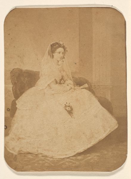 Charles Yardley Turner made this etching, "Woman Sewing," using a metal plate, likely copper or zinc, and acid. The artist would have applied a waxy ground to the plate, then scratched an image into it with a needle, exposing the metal. Immersing the plate in acid then bites away at the exposed lines, creating grooves that hold ink. The plate is then inked, wiped clean, and pressed onto paper, transferring the image. Notice how the varying line depths create a range of tones, from the deep shadows to the delicate light on the woman's dress. The act of sewing itself speaks to labor, textiles, and the domestic sphere, all closely associated with women's work in the 19th century. Etching, like sewing, is a process of meticulous mark-making. Understanding the labor involved in both making the print and the subject's sewing helps us appreciate the artwork's social context. It challenges us to consider the value of both artistic and domestic labor, moving beyond conventional art historical boundaries.