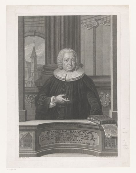 This is a portrait of Friedrich Gustav Finckler made by Georg Martin Preissler as an engraving. The trappings of power and prestige are all here: the learned-looking book, the classical column, and of course the elaborate wig and clothing appropriate to a man of his station. It was made in the German lands sometime in the 18th century. Finckler served as a city judge in Nuremberg, and in the image, the material markers of his high social status act as a testament to the institutional structures of the time. It makes sense that the artist would try to represent the social and cultural identity of the portrayed in a way that is consistent with the politics and ideology of the ruling classes. To properly understand a work such as this, we can investigate its subject in local archives and in genealogical records. This will help to uncover the economic conditions that allowed for the production of such images and what specific institutions, such as the courts, were being represented. In so doing, we can come to appreciate how this artwork is contingent on its social and institutional context.