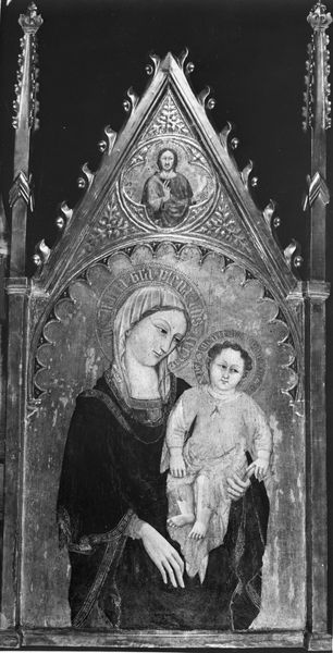 This silver panel of the Virgin and Child was made by Francesco Marti in Italy, likely Florence, in the early 16th century. While we don't know the exact circumstances of its commission, the image of the Madonna and Child was ubiquitous in the Renaissance. Such images operated on several levels. They were devotional objects, offering a focal point for prayer and contemplation for the increasing number of people who prayed at home. But they also served as statements of wealth and taste. The precious materials and refined craftsmanship evident here attest to the patron's social standing. The Virgin's modest gaze and flowing drapery are visual cues that speak to her purity and grace, reflecting contemporary ideals of feminine virtue. The haloes denote the holy status of the figures and the panel’s floral decorations are reminiscent of illuminated manuscripts, connecting it to a tradition of sacred art. Understanding the iconography and cultural context of Renaissance art allows us to appreciate how art reflected and shaped social values. Through meticulous research into patronage records, religious texts, and social histories, we can better understand the complex layers of meaning embedded in objects like this.