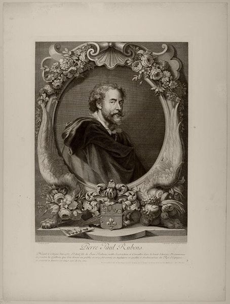 Editor: This is Willem Jacobszoon Delff's portrait of Michiel Jansz Mierevelt, held at the Harvard Art Museums. The contrast between light and shadow gives it such depth. What do you see in the composition? Curator: Observe the rigorous use of line and form. The architecture anchors the figure, while the meticulously rendered textures of the clothing create a subtle interplay of light and shadow, directing the eye towards the subject's gaze. The gloves offer a striking visual and tactile contrast. Editor: So, it's less about who Mierevelt was and more about *how* Delff depicted him? Curator: Precisely. The essence lies within the formal relationships—the dialogue between line, texture, and composition. Editor: I’ve never considered portraiture this way before. Thank you. Curator: A fresh perspective unveils new understanding.