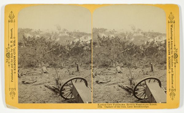 This stereograph, made by Underwood & Underwood, shows a landscape in South Africa during the Second Boer War. It's a mass-produced image, printed using photographic processes that were rapidly developing at the time. The photo’s material simplicity belies its complex social context. As a multiple, this stereograph was designed for wide distribution, bringing distant conflicts into homes across the world. This ease of reproduction was only possible due to industrialized methods, linking photography to wider issues of labor, politics, and consumption. Notice how the stark landscape evokes the harsh realities of war. The scene is raw and unglamorous, far from heroic portrayals, and the labor involved in war is a heavy burden. This stereograph, in its own way, challenges traditional distinctions between fine art and craft, using a humble medium to convey powerful narratives. The way it was made and the context it captures, invites us to reflect on the human cost of conflict and the power of images in shaping public perception.