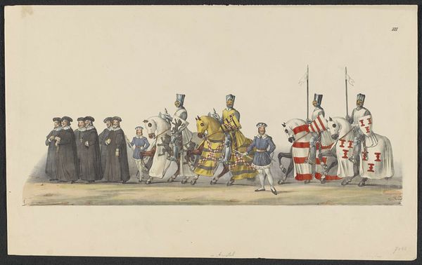 This anonymous artwork depicts a costumed procession in 1841 using ink on paper. The dominant visual symbol here is the lion, emblazoned on flags, shields, and horse coverings, signifying courage, nobility, and royalty. The lion motif, dating back to ancient Mesopotamia, appears in diverse cultural contexts, from the biblical emblem of the Tribe of Judah to the heraldic symbol of Richard the Lionheart. Over time, it’s evolved from a symbol of raw power to an icon of regal authority and national identity. One cannot help but notice how the lion has been a recurring figure in the human psyche, its roaring presence stirring up a mixture of awe, fear, and respect. This potent imagery engages viewers on a subconscious level, tapping into primal instincts and collective memories of power, protection, and territoriality. The cyclical progression of the lion symbol, resurfacing across centuries and cultures, reminds us of the enduring human fascination with strength, leadership, and the primal forces that shape our world.